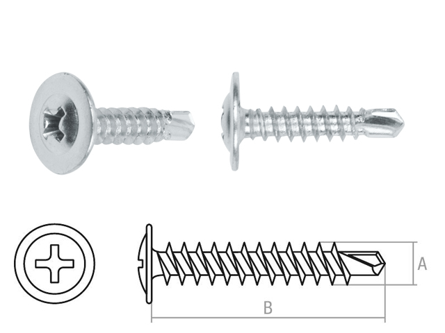 Применяется для крепления стальных и других листовых материалов (фанера, оргалит и т.д.) к металлическим и деревянным несущим конструкциям.